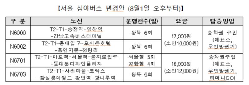 이번에 개편하는 노선은 △N6002(청량리역) △N6703(광나루역) △N6000(강남고속터미널) 3개 노선이다.