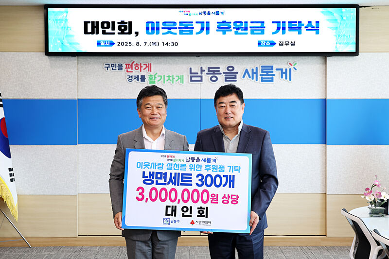 인천시 남동구(박종효 구청장)는 대인회로부터 이웃돕기 후원품 냉면 세트 300(300만 원 상당)를 기탁받았다고 9일 밝혔다