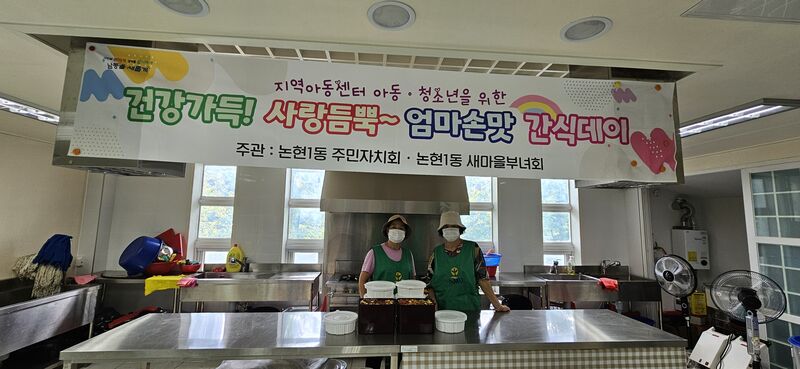 인천시 남동구 논현1동 행정복지센터는 새마을부녀회(회장 최영애)에서 지역아동센터 아이들을 위한 간식 나눔 행사인 ‘건강가득! 사랑듬뿍~ 엄마손맛 간식데이’를 진행했다고 22일 밝혔다.