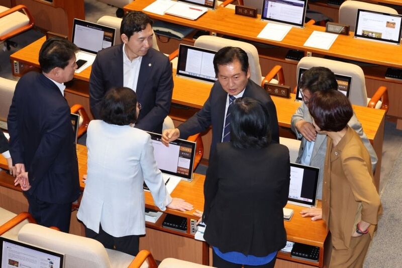 전날 상정된 법안에 대해 국민의힘이 이틀째 필리버스터를 이어갔으나 더불어민주당이 종결 동의를 요청하면서 전날 첫 토론자로 나선 국민의힘 곽규택 의원의 발언이 시작된 지 24시간이 지난 이날 오전 942분께 토론 종결 표결이 이뤄졌다