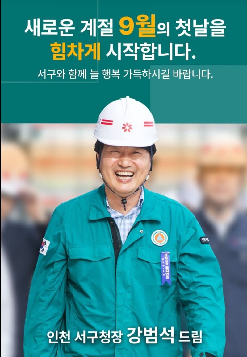 9월의 첫날, 인사를 전합니다! 강범석 인천 서구청장 SNS 글 인용