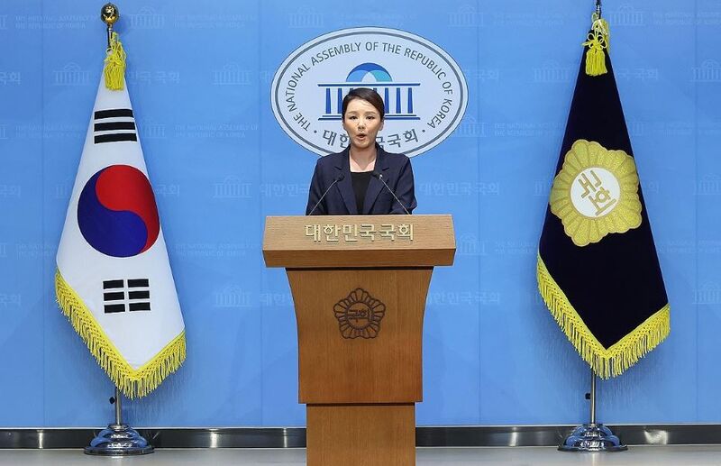 강 대변인은 이날 1일 서울 영등포구 여의동 국회에서 기자회견을 갖고 조국혁신당을 탈당한다고 밝혔다.