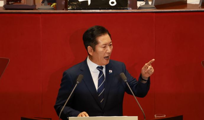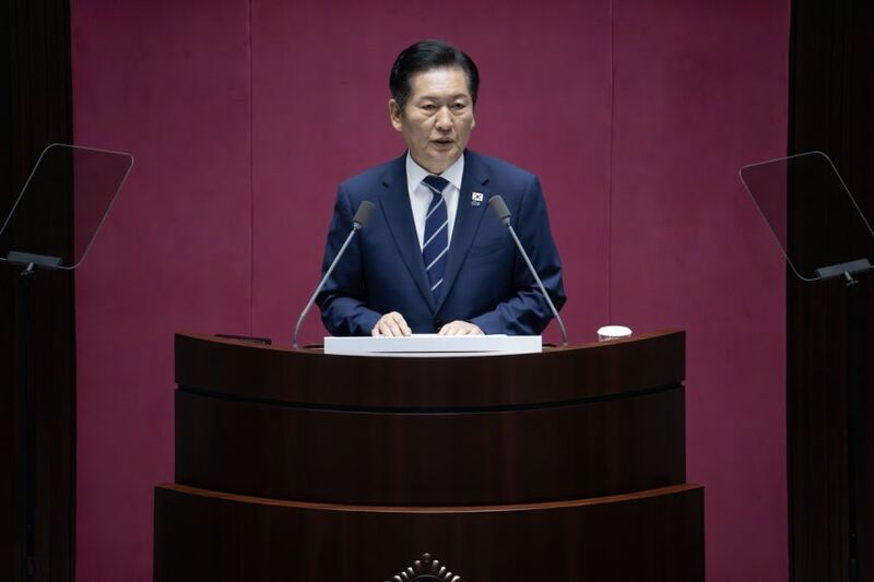정청래 더불어민주당 대표가 9일 이재명 정부 출범 후 진행된 첫 국회 교섭단체 연설에서 “내란 청산은 정치 보복이 아니다”라고 했다.