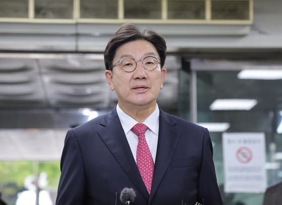 권 의원은 16일 오후 1시 35분께 민중기 특별검사팀의 영장 청구에 따라 구속 전 피의자 심문(영장실질심사)이 열리는 서울중앙지법에 도착했다.