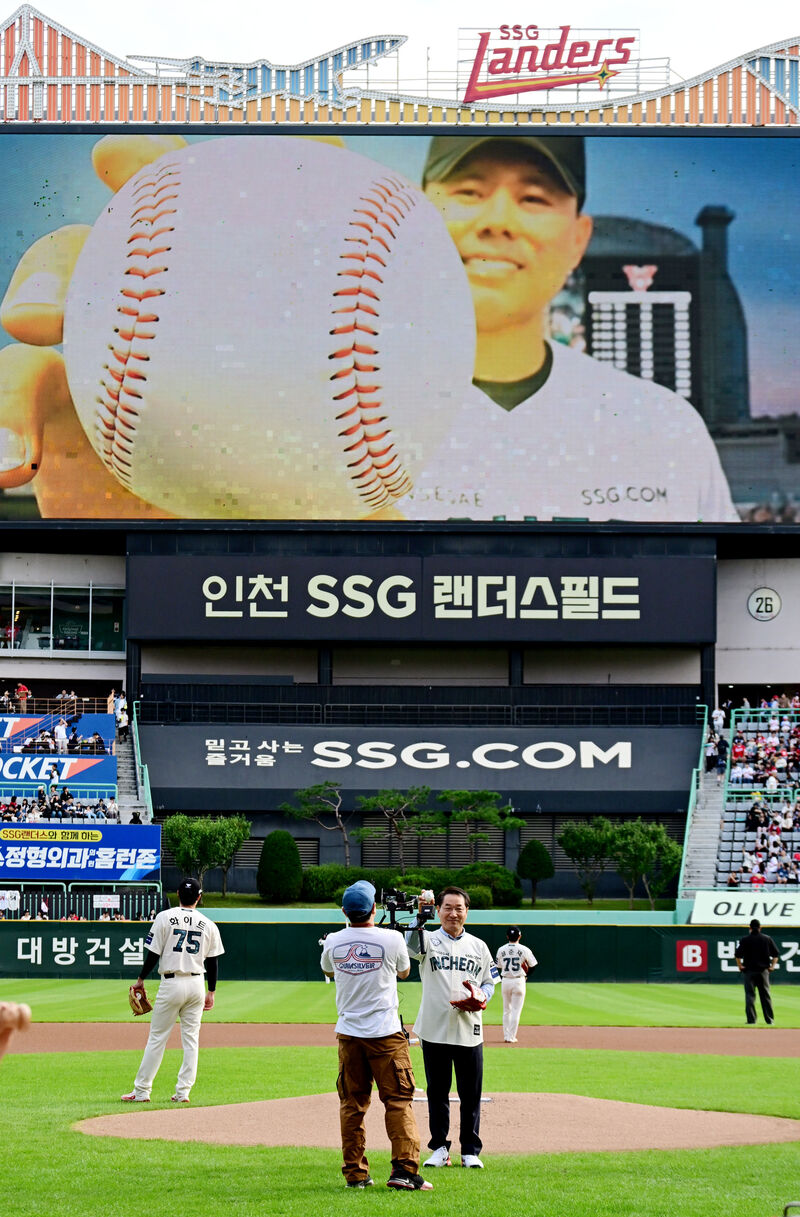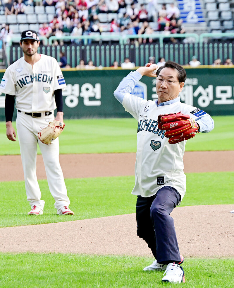 유정복 시장은 AI로 복원된 故 김동석 대령께 공을 전달받아 시구를 했습니다. 과거의 용기를 오늘의 평화로 잇는 마음으로 던졌고, 시타는 전훈영 양궁 금메달리스트가 함께해 힘찬 시작을 열었습니다.