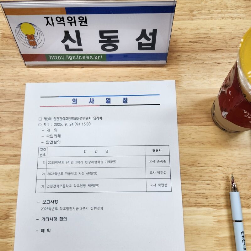 간석초등학교 운영위원회 ▲2025년 6학년 2학기 현장체험학습 ▲2026년도 자율학교 지전 신청 ▲인천간석초등학교 학교헌장제정등 불편사항 개선 요청 등 다양한 의견을 주고받고해결 방안을 논의했다.
