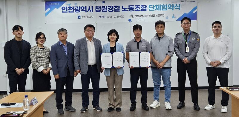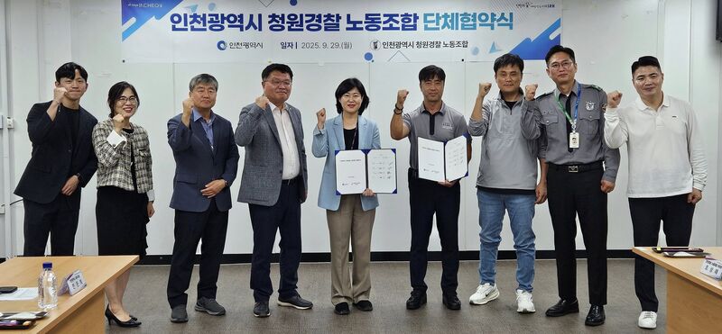 인천시(시장 유정복)는 시청 소통회의실에서 인천광역시 청원경찰 노동조합과 역사적인 첫 단체협약을 체결했다고 밝혔다