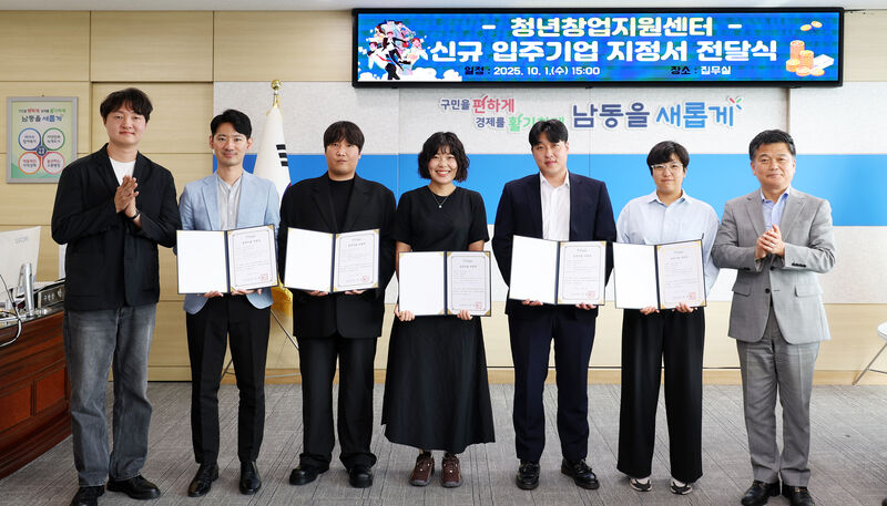 인천시 남동구는 최근 구청장 집무실에서 남동구 청년창업지원센터 신규 입주기업 팀에 입주기업 지정서를 전달했다고 2일 밝혔다.