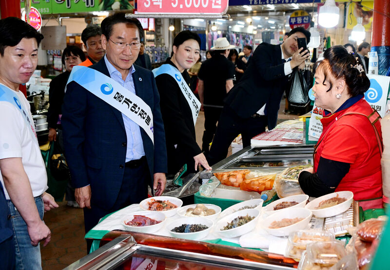시장 현장의 분위기를 살피며 명절 물가 동향을 점검한 유 시장은 장바구니 부담이 큰 시기인 만큼 물가 안정에 지속적인 관심을 기울이겠다고 했다