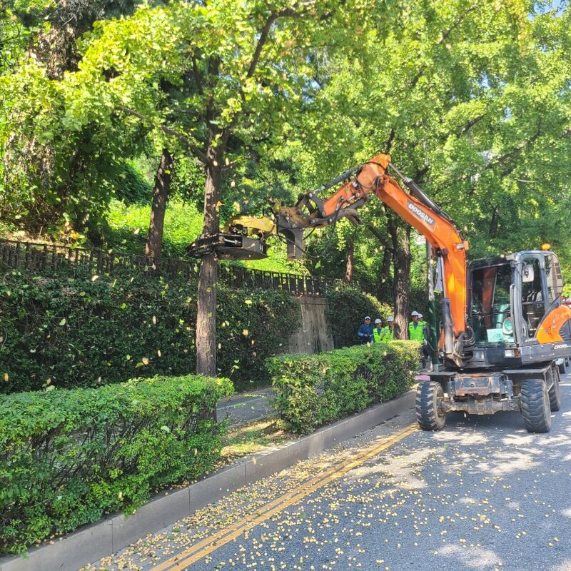 남동구에 따르면 9월 말에서 10월 말까지 진동 수확 장치와 장대 등을 활용해 가로수 은행 열매 수확 작업을 진행한다.