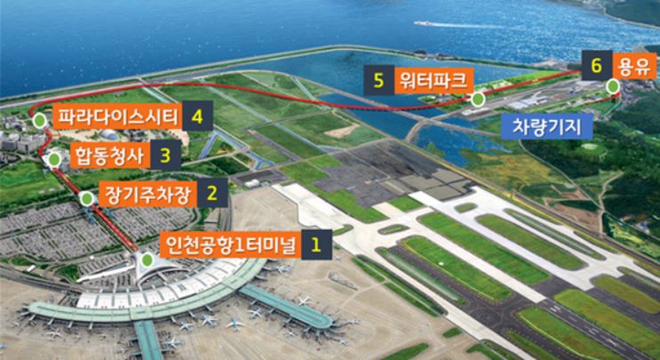 인천공항 자기부상열차의 운행노선은 인천공항 제1여객터미널 역에서 용유역까지 6개 역사총 6.1킬로미터(Km) 구간이며 기존의 대중교통수단에서 관광·체험열차로 변경됨에 따라 관련 법령에 의거 시속 40Km 이하로 주행합니다.