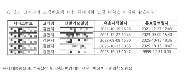 박정훈 국민의힘 의원은 20일 "김현지 대통령실 제1부속실장의 휴대전화 교체 기록을 KT로부터 입수해 분석한 결과 올해 국정감사 시작 당일에는 2차례나 교체했다"고 말했다.