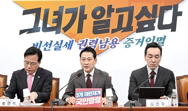 송 원내대표는 “김현지라는 이름만 나오면 발작하며 육탄 방어에 나서는 더불어민주당 의원들의 모습을 보면서 현 정권이 이재명 김현지 공동 정권이라는 항간의 이야기가 결코 근거가 없지 않다는 생각마저 들었다”고 덧붙였다.
