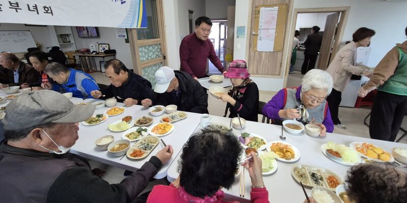 부녀회원들은 조리한 과일, 밑반찬 등을 가지고 경로당을 방문해 어르신들에게 점심 식사를 대접했다.