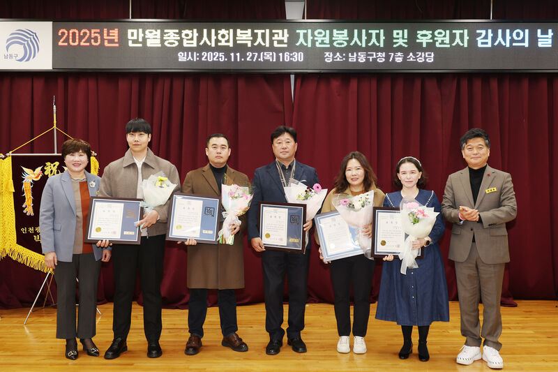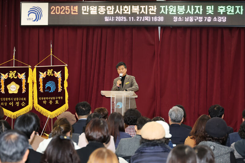 인천 남동구(구청장 박종효)는 11월 27(구청 소강당에서 열린 2025년 만월종합사회복지관 자원봉사자 및 후원자 감사의 날 행사에 참석했다.