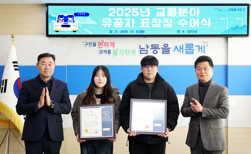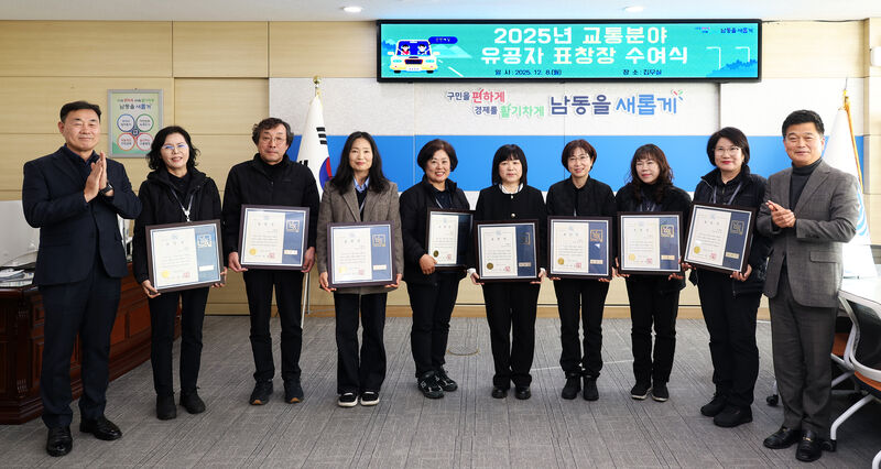 인천시 남동구는 구청장 집무실에서 ‘2025년도 교통 분야 유공자 표창 수여식’을 열고, 안전하고 편리한 남동구 교통 환경 조성에 헌신한 유공자들에게 감사를 전했다고 9일 밝혔다.