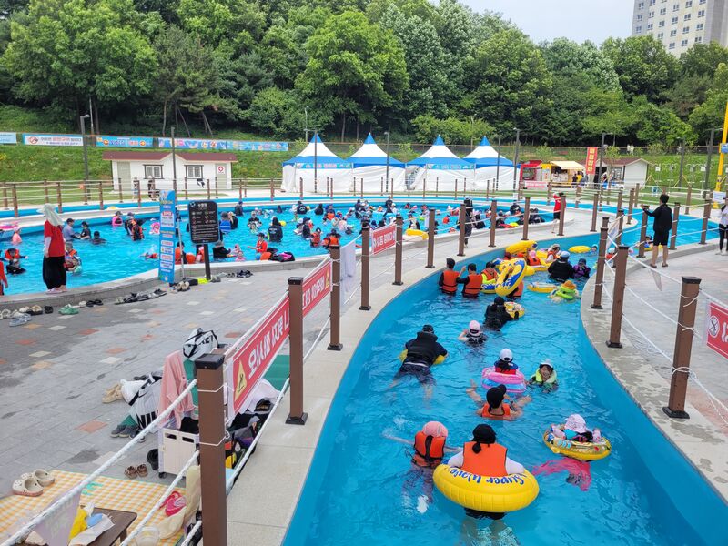 가족 단위 방문객이 주를 이뤘고튜브와 물안경 등 물놀이용품으로 만반의 준비를 하는 등 남동 물빛놀이터에 대한 기대감을 여실히 나타냈다.