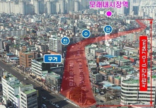 남동구는 1단계와 2단계로 나누어 추진할 계획인데현재 만수동 909 일원부터 만수동 1008 일원까지 1㎞ 구간을 대상으로 하는 1단계 사업을 준비 중이다