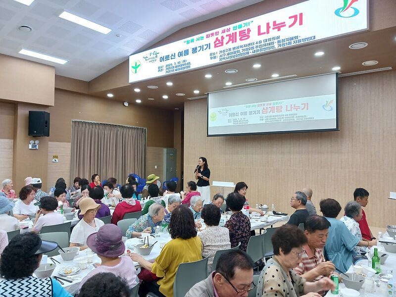 가정 2동 새마을부녀회,새마을협의회가 지난 10일 관내 어르신들에게 직접 만든 여름 보양식을 제공했다.