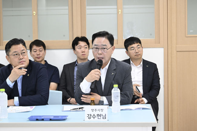 강수현 양주시장이 회암초서 학부모와 통학 안전 간담회를 가졌다.강수현 양주시장이 최근 회암초등학교를 방문해 ‘교육발전협의회’ 학부모들과 간담회를 진행했다. 이날 간담회에 앞서 강 시장은 양주경찰서장 및 관계 공무원과 함께 학교 주변 통학로를 직접 점검하고 등·하교 시간대 학생들의 안전을 위한 개선책을 논의했다.