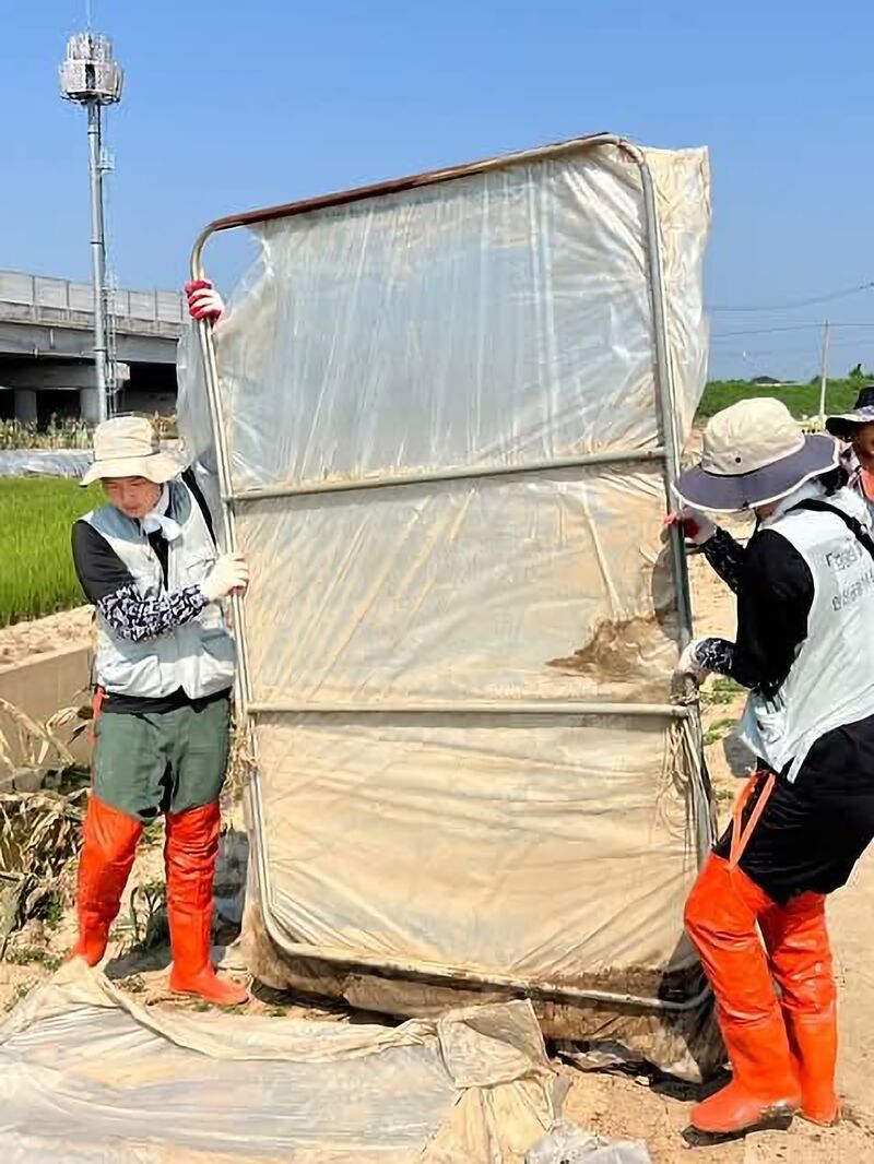 이학재 사장은 무더운 날씨에 구슬땀을 흘려가며 농민들에게 용기와 힘을 북돋아준
