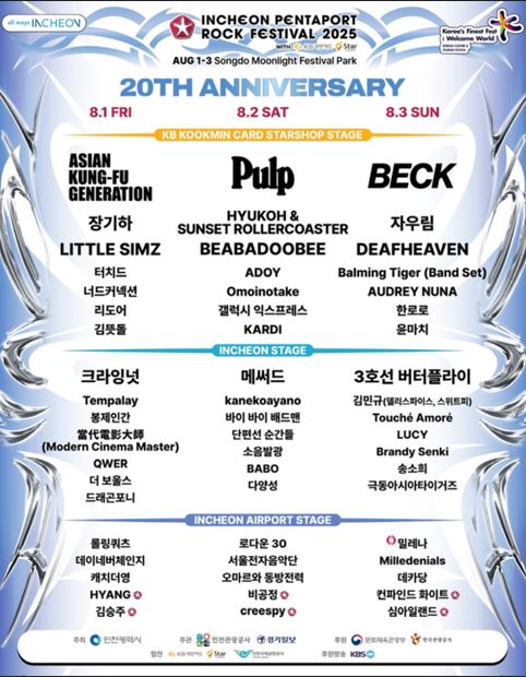 인천시가 주최하고인천관광공사와 경기일보가 공동 주관하는 '2025 인천펜타포트 락 페스티벌'이 오는 8월 1()부터 8월 3()까지 송도달빛축제공원에서 개최된다.